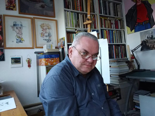 Nach einer Ausbildung zum Kunst- und Bauglaser und einer Tätigkeit in diesem Beruf absolvierte er eine zweite Ausbildung zum Fachangestellten für Medien- und Informationsdienste und arbeitet seitdem in einer großen wissenschaftlichen Bibliothek in Berlin. Parallel entwickelte er seine künstlerische Handschrift weiter – mit Karikaturen, Cartoons, Linolschnitt, Siebdruck und digitaler Kunst.