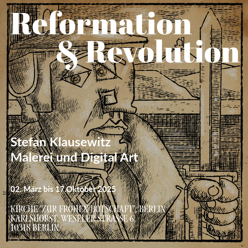 Reformation & Revolution – Kunst von Stefan Klausewitz: Acrylbilder, Collagen, digitale Kunst, AI Art und Skizzen zu Luther, Müntzer, Melanchthon und Cranach. Historische Motive in moderner Bildsprache neu interpretiert.