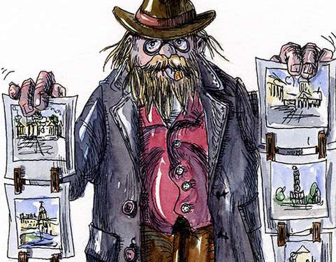Cartoon Art von Stefan Klausewitz: Spitzweg-Adaptionen und humorvolle Tiermotive – Acrylbilder, Collagen & Zeichnungen